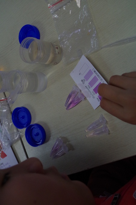 老師帶領同學們檢測冰糖銀耳蓮子里面的二氧化硫
