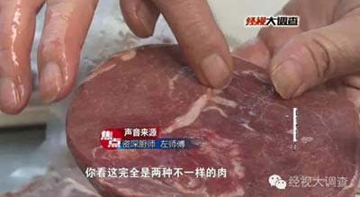 12月2日晚,湖南電視臺經視頻道《經視大調查》欄目播出《金牛角王牛排里的“秘密”》,直指長沙金牛角王餐飲服務有限公司牛排中含“鴨肉”成份,且供貨方為上海品尚食品有限公司(以下簡稱品尚)。