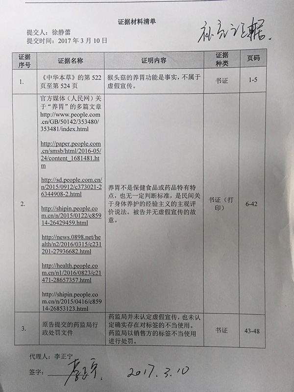 江中集團(tuán)提交證據(jù)稱食藥監(jiān)局已撤銷處罰