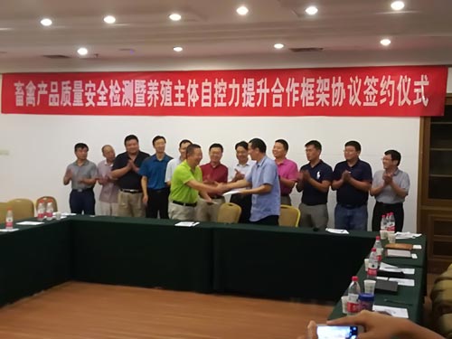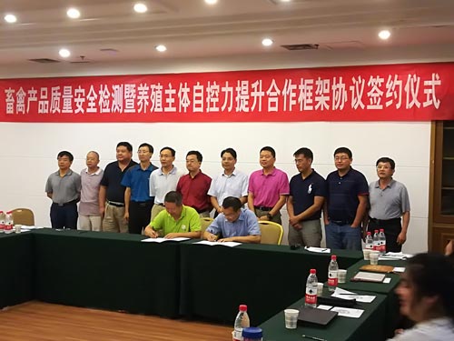 今天上午北京市畜牧總局與北京智云達(dá)科技股份有限公司(以下簡稱北京智云達(dá))在北京舉行“畜禽產(chǎn)品質(zhì)量安全檢測暨養(yǎng)殖主體自控力提升合作框架協(xié)議”簽字儀式,這次活動標(biāo)志著智云達(dá)從食安快檢產(chǎn)品銷售邁向食品質(zhì)量與安全的綜合服務(wù)商跨出實質(zhì)性一大步。感謝北京畜牧總站、畜牧環(huán)監(jiān)總站、市動監(jiān)、市獸藥監(jiān)察所的領(lǐng)導(dǎo)專家出席簽約儀式。