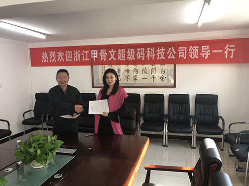 北京智云達(dá)總經(jīng)理??偱c浙江甲骨文領(lǐng)導(dǎo)簽訂合作協(xié)議