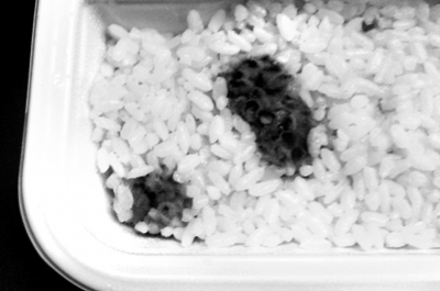 3日下午6點(diǎn),該列車剛開(kāi)出長(zhǎng)沙站,11號(hào)車廂內(nèi)有11位乘客購(gòu)買了35元一份的紅燒牛肉盒飯。一位姓胡的乘客發(fā)現(xiàn)盒飯有兩處明顯的霉斑。但是盒飯的包裝是2013年10月10日,還有"常溫下貯存,保質(zhì)期90天"的字樣。