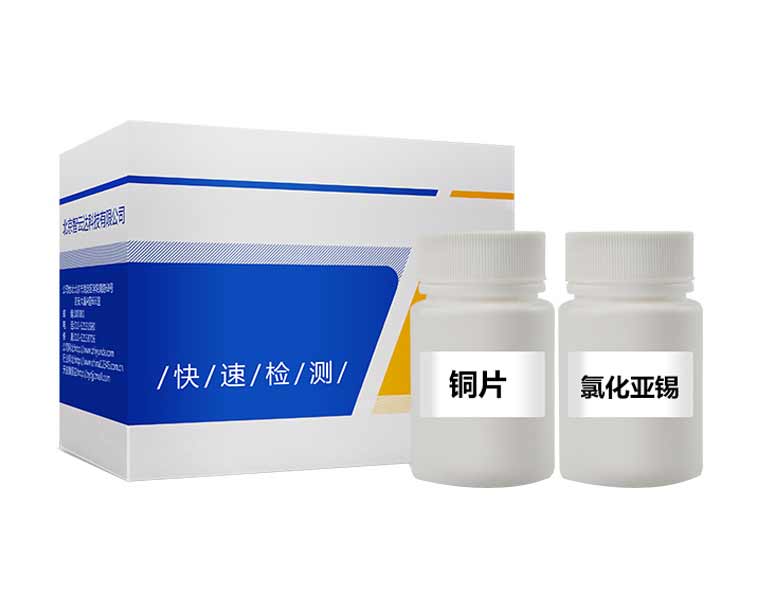 在酸性條件下,砷化物或汞化物與金屬銅作用產生反應,砷化物使銅的表面變成灰色或黑色,汞化物使銅的表面變成銀白色。方法靈敏度:砷 1ppm,汞 20ppm。
