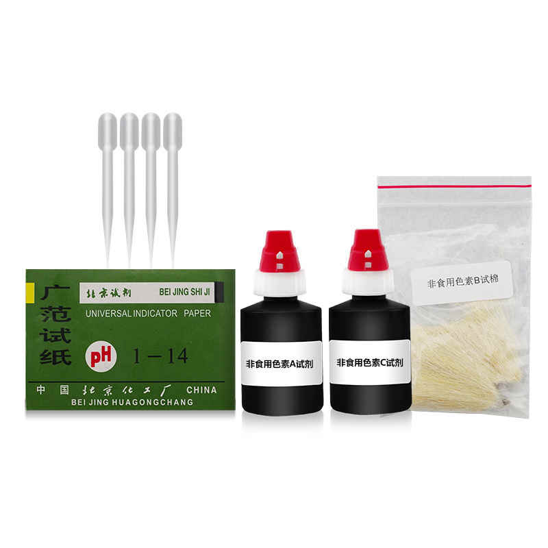 取10mL藍(lán)色或綠色可疑液體放入試管中,滴入A試劑調(diào)pH到10~11之間,將試管放入90℃以上的水浴中5分鐘后,如果藍(lán)色或綠色褪去變?yōu)闊o色,用涼水冷卻后,再滴入C試劑調(diào)pH到2~3之間,放回水浴中,5分鐘后又變回原有顏色,可初步判斷樣品中含有孔雀石綠。 此時(shí), 可用涼水冷卻后, 再用A試劑回調(diào)pH到7~8之間(不要高于9),加入B試棉少許,將試管放入90℃以上的水浴中1min,攪拌試棉后將其取出,用清水漂洗試棉,試棉上的顏色不褪可進(jìn)一步判斷樣品中含有孔雀石綠,有條件的可將樣品送實(shí)驗(yàn)室進(jìn)一步確證。