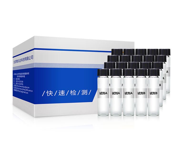 2.樣品檢測:用0.5mL塑料吸管吸取上層樣品處理液,加3~5滴于試劑B中,蓋上蓋子后搖勻,馬上觀察溶液顏色。