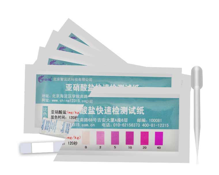 亞硝酸鹽中毒可引起呼吸困難甚至循環衰竭而死亡,還可與胺類物質在適合的條件下形成強致癌物亞硝胺,所以亞硝酸鹽的檢測有著重要的意義。本品適用于食品中亞硝酸鹽的半定量檢測。