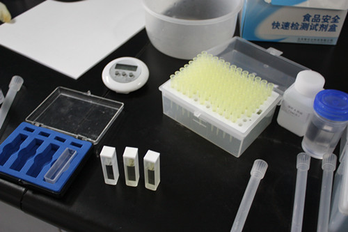 實驗地點:北京智云達(dá)科技有限公司食品安全快速監(jiān)測網(wǎng)消費(fèi)者體驗中心。這次實驗用了兩種儀器試劑進(jìn)行檢測,分別由技術(shù)工程師于勇和楊益平操作。