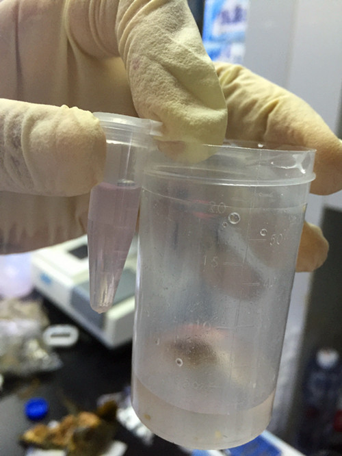 首先我們將粽子打開,稱取剪碎的粽葉0.8g于提取瓶中,加蒸餾水或純凈水 20mL,蓋上蓋振搖 1 分鐘,放置 10min,期間可振搖加快提取,其上清液為樣品液。之后吸取 1mL 樣品液于 1.5mL 離心管中,滴加 3 滴銅試劑 A,滴加 3 滴銅試劑 B,滴加 6 滴銅試劑 C,蓋塞混勻,靜置 10min,最后觀察溶液顏色變化。溶液變藍色或者綠色,說明含有硫酸銅;溶液不變色說明樣品未噴灑硫酸銅。其中,空白測定:用純凈水或蒸餾水替換銅試劑 C,其它操作與樣品測定相同。